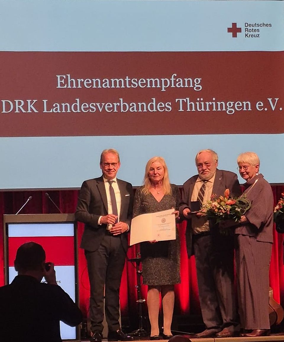 Die Verleihung der Verdienstmedaille erfolgte im Rahmen des diesjährigen Ehrenamtsempfangs im Kaisersaal zu Erfurt. Unser Vorstandsvorsitzender Guido Solf gratulierte vor Ort und bezeichnete die Ehrung als würdigen Ausdruck des Dienstes am Menschen und im Sinne der humanitären Grundsätze der Rotkreuzbewegung von Herrn Richardt.